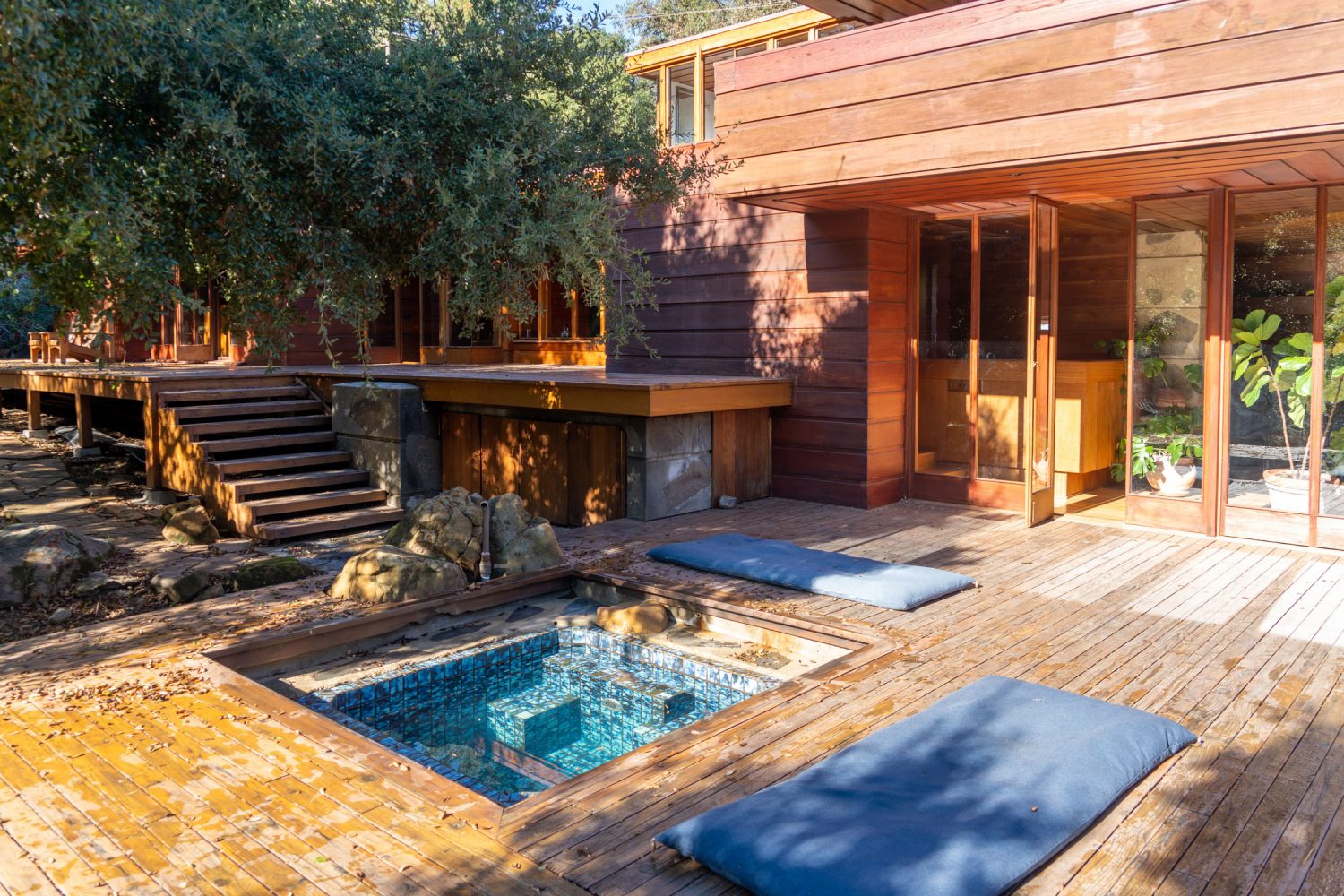 The Anderson House also features a multi-platform wooden deck with a Jacuzzi and the natural beauty of the Topanga Hills as the background. Great for fashion photoshoots in a bohemian picturesque environment.
